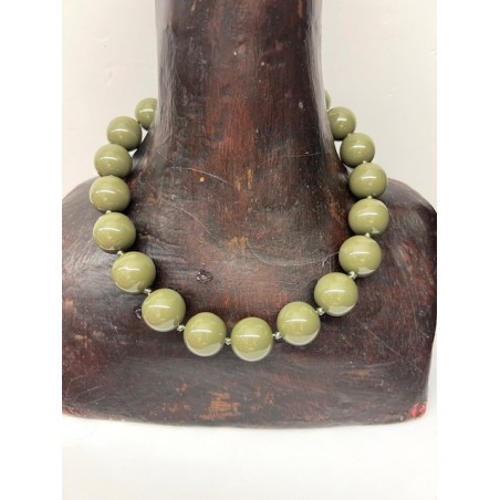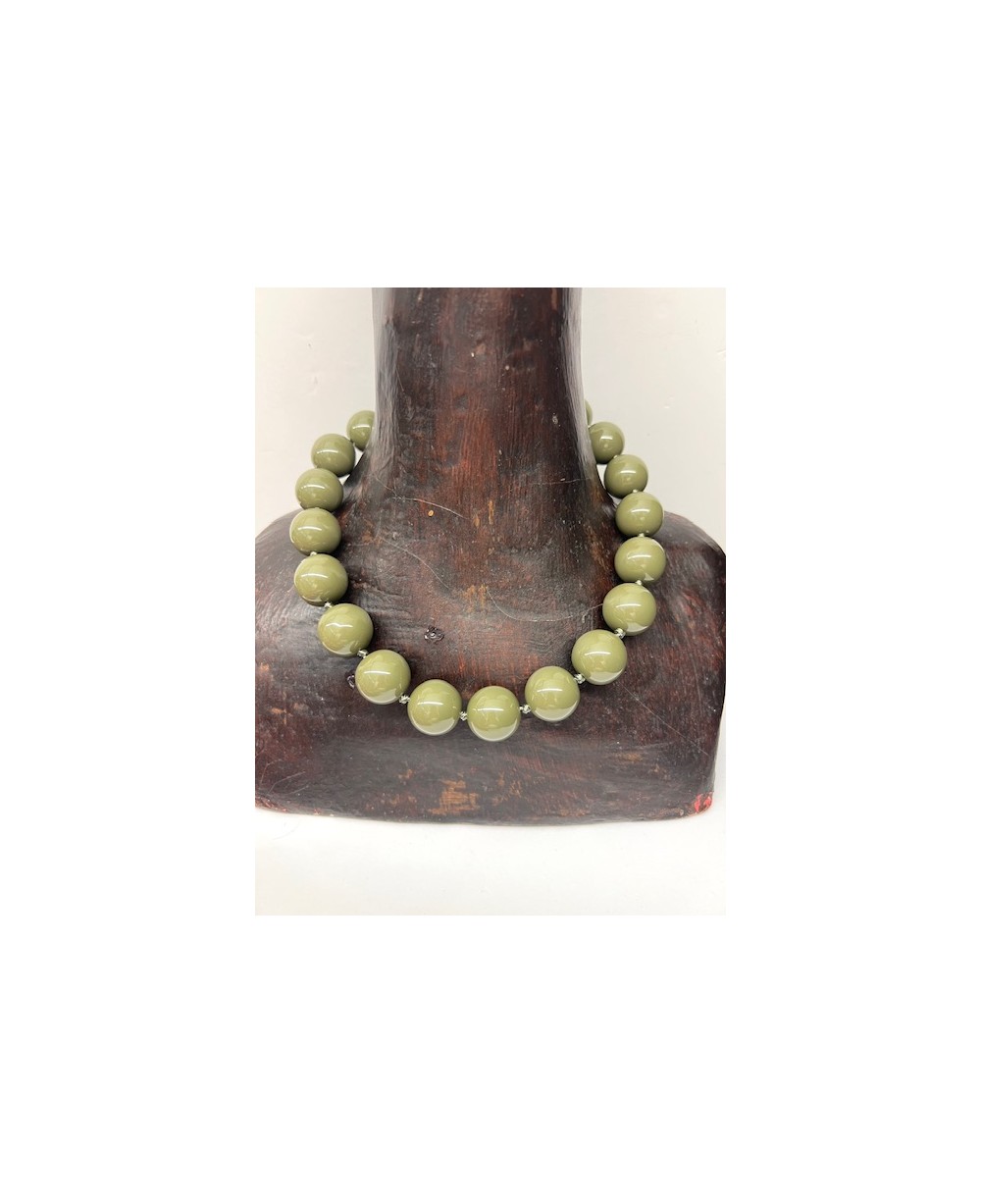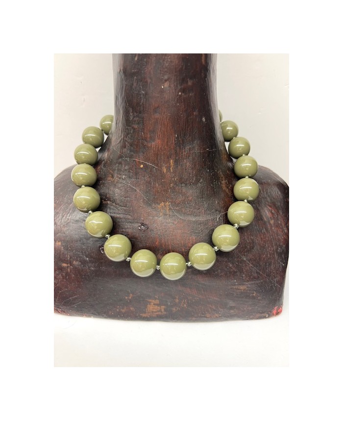 Collar cuentas de resina italiana en tono verde oliva con cierre de reasa marinera.