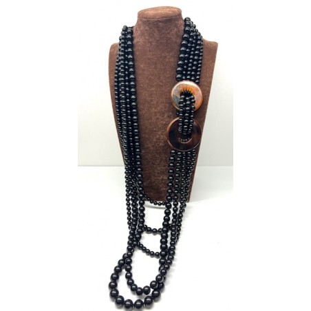 Collar largo en tono negro de cinco vueltas de piezas de resina adornado por dos eslabones del mismo material.