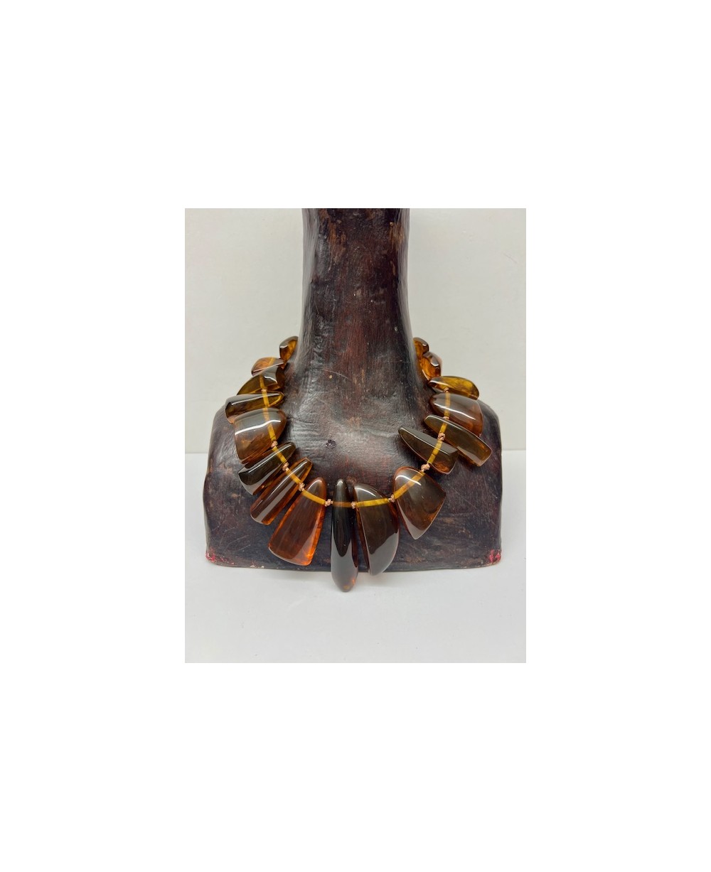 Espectacular collar de piezas de resina en tono caramelo.
