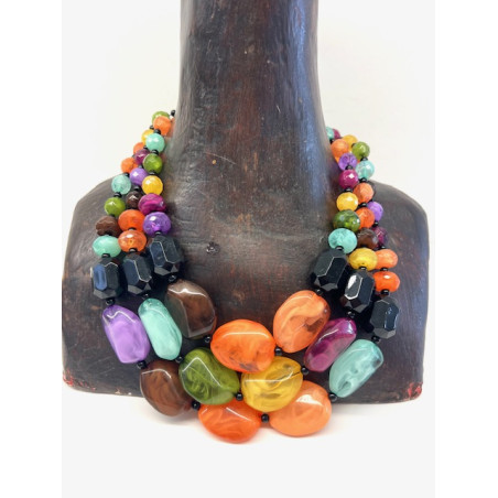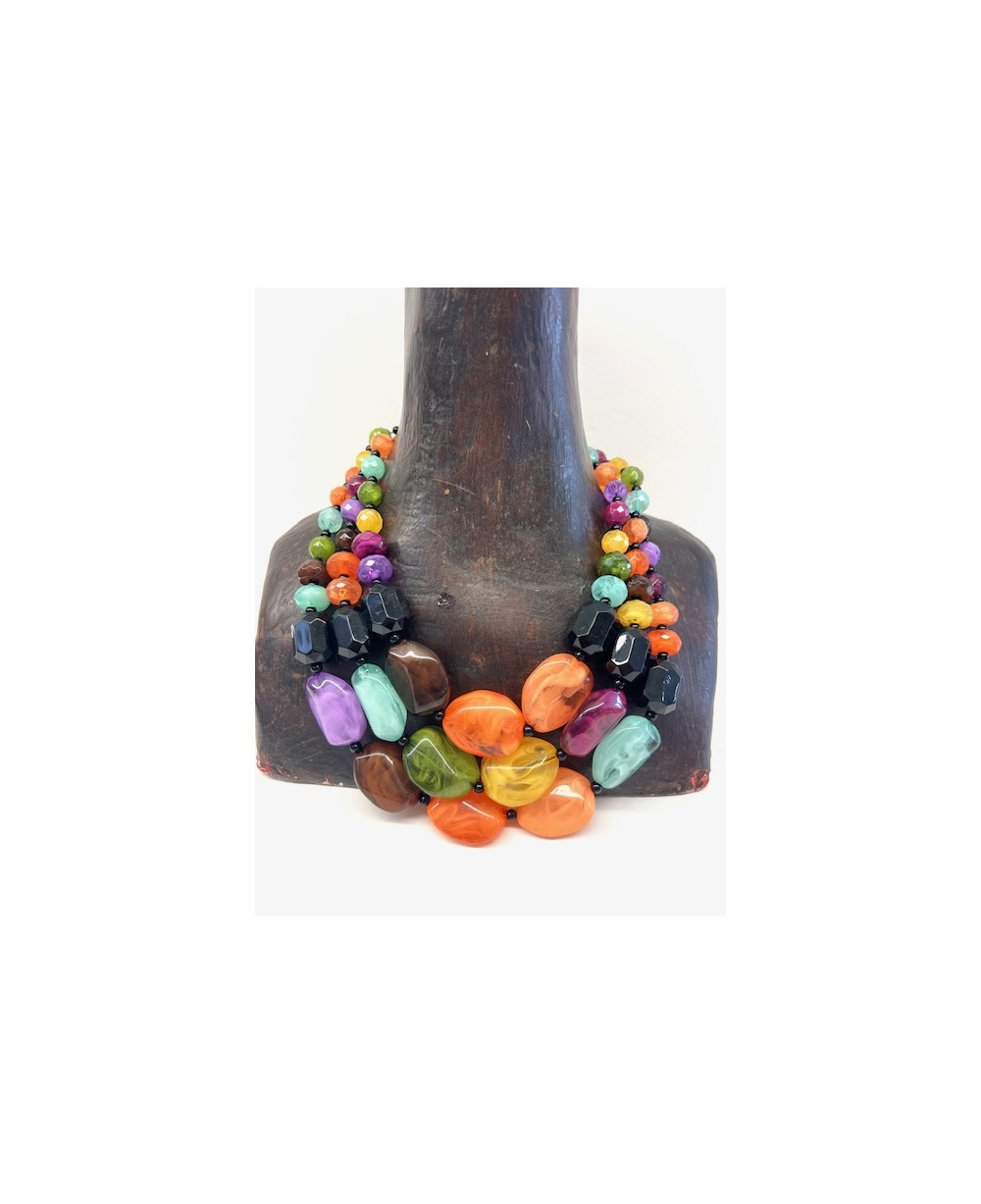 Collar de tres vueltas de piezas de resina multicolor.