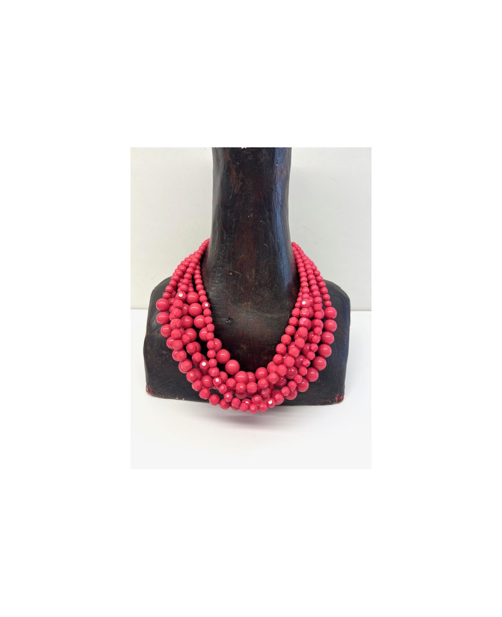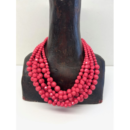 Collar multi-vueltas de resina en tono rosa fuerte.