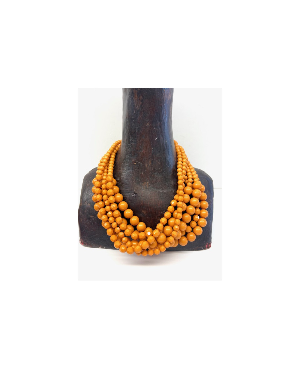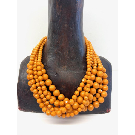 Collar multi-vueltas de resina en tono mostaza.