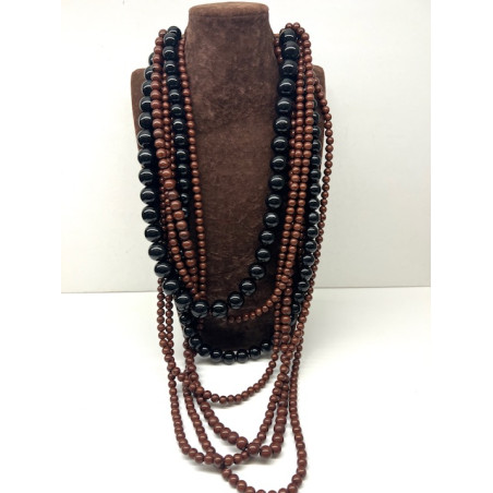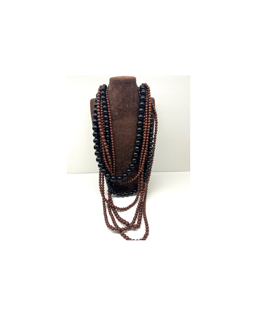 Collar de siete vueltas de bolas de resina combinado negro y marrón.