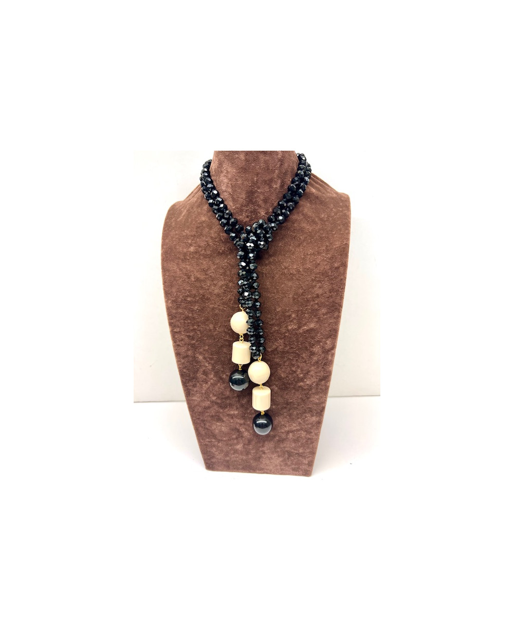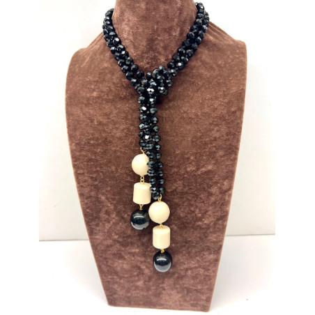 Collar de cristal en tono negro rematado con dos colgantes formados por piezas de resina.