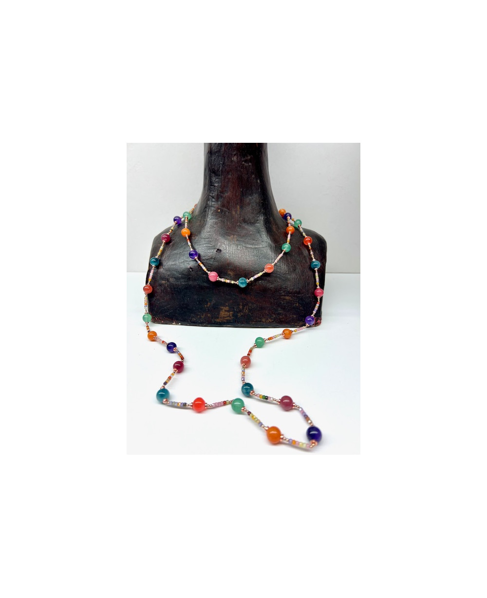 Espectacular collar de piedras de colores y cristales.